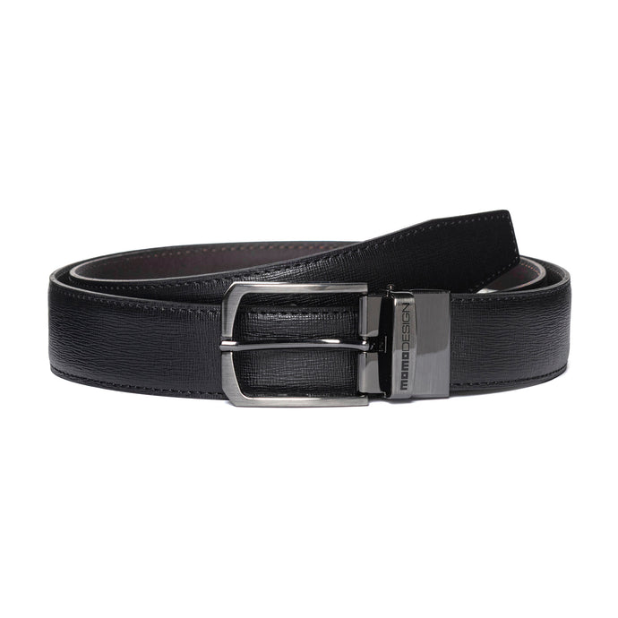 Momodesign Cintura in pelle saffiano nera / blu con fibbia in metallo spazzolato