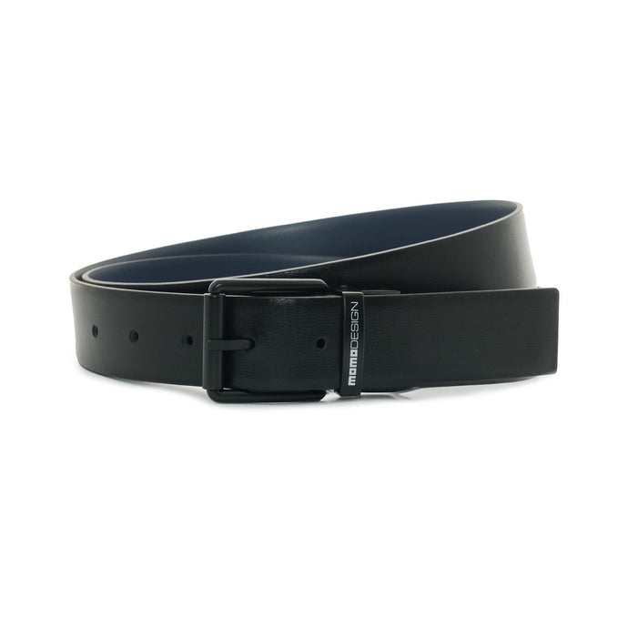 Momodesign Cintura in pelle nera / blu con fibbia nero opaco