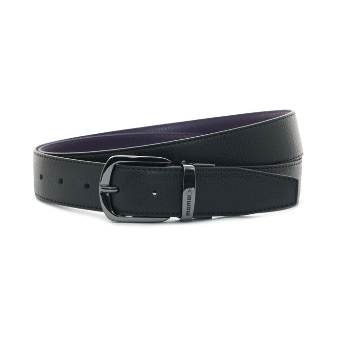 Momodesign Cintura in pelle nera / blu con fibbia nero lucido